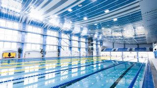●スイム 25m×6 バック コーチが補助しながら、バックの入水した手が伸びるタイミングを掴むドリルを 150m